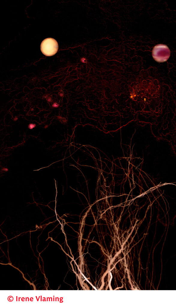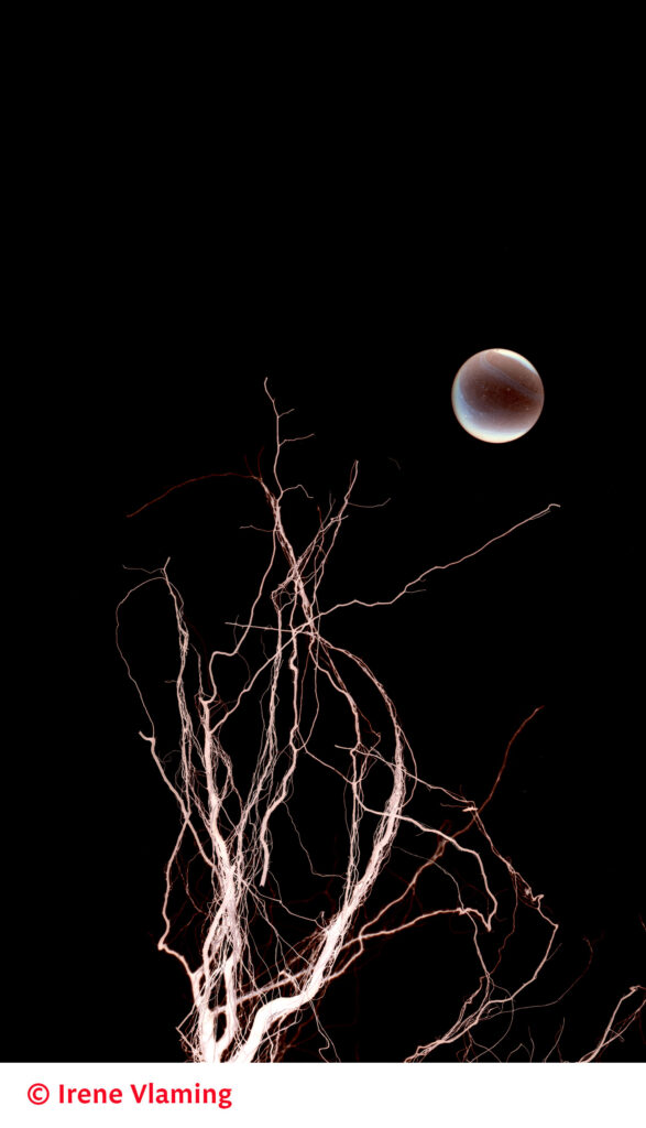 Het nieuwste werk (sinds 2023) zoomt in op het allergrootste en het allerkleinste. Er worden situaties gecreƫerd met verf en 3d-objecten die verwijzingen kunnen bieden naar het heelal, maar evengoed naar het binnenste van een menselijke cel. De combinatie van imaginaire voorstellingen met werkelijke objecten als onder andere plantenwortels in dit portfolio van Irene levert beelden op die hopelijk aanzetten tot nadenken over de schoonheid en de kwetsbaarheid van de natuur.